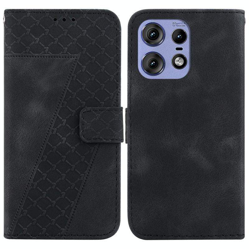 Θήκη τηλεφώνου από δέρμα με ανάγλυφο σχέδιο σε σχήμα επτά για Motorola Edge 50 Pro (Μαύρο)