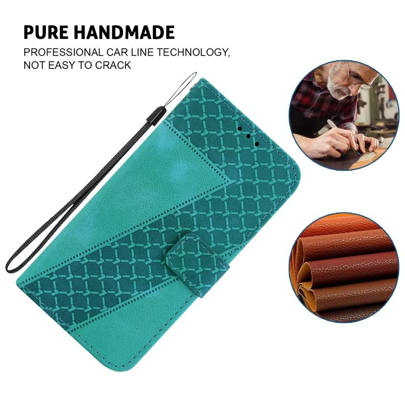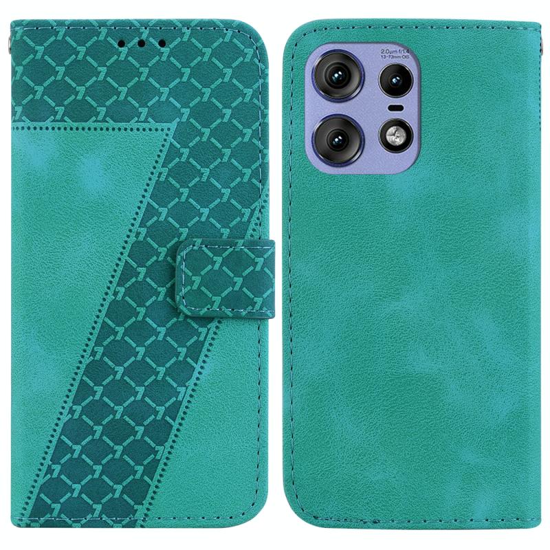 Θήκη τηλεφώνου από δέρμα με ανάγλυφο σχέδιο σε σχήμα επτά για Motorola Edge 50 Pro (πράσινο)