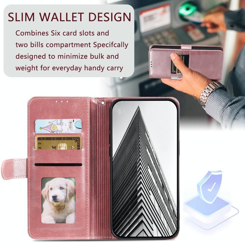 Για Motorola Edge 50 Pro Απλή 6-Card πορτοφόλι δερμάτινη θήκη τηλεφώνου (ροζ χρυσό)
