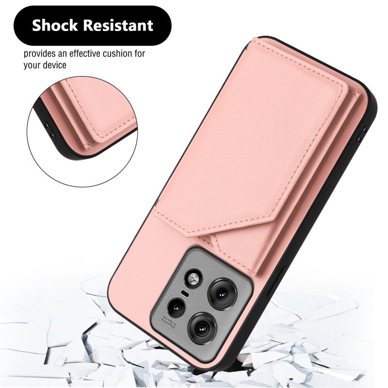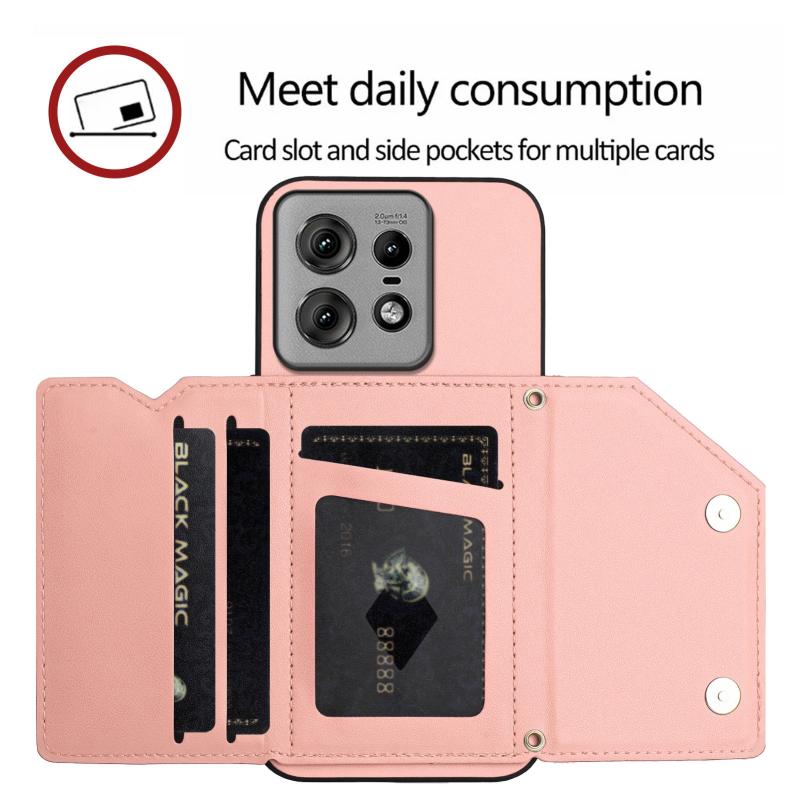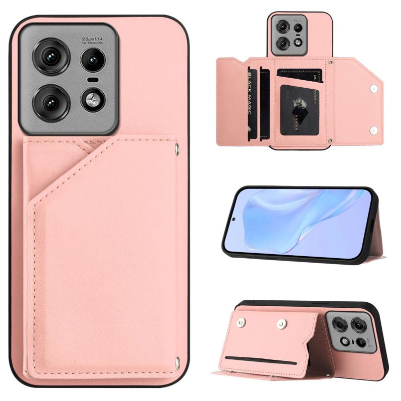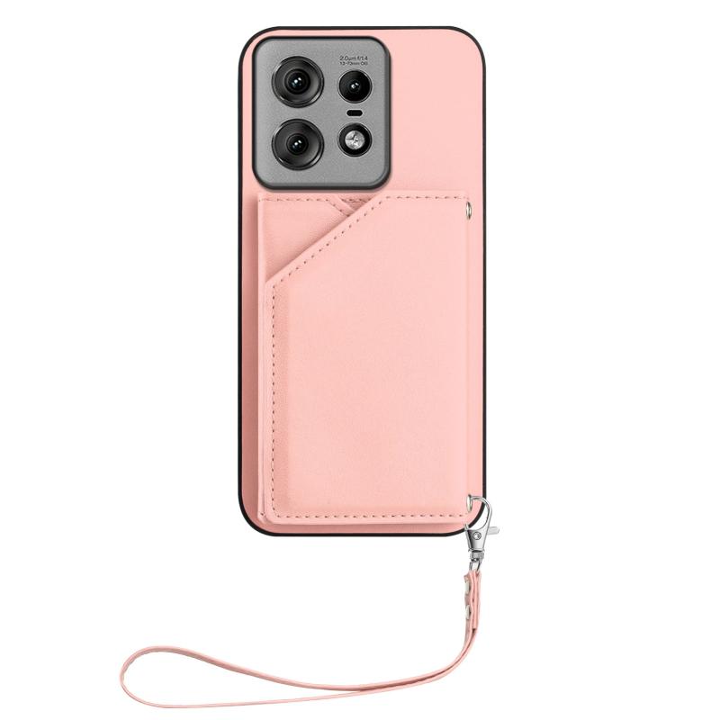 For Motorola Edge 50 Pro Skin Feel Four Card Slots Phone Case with Wrist Strap(Pink)