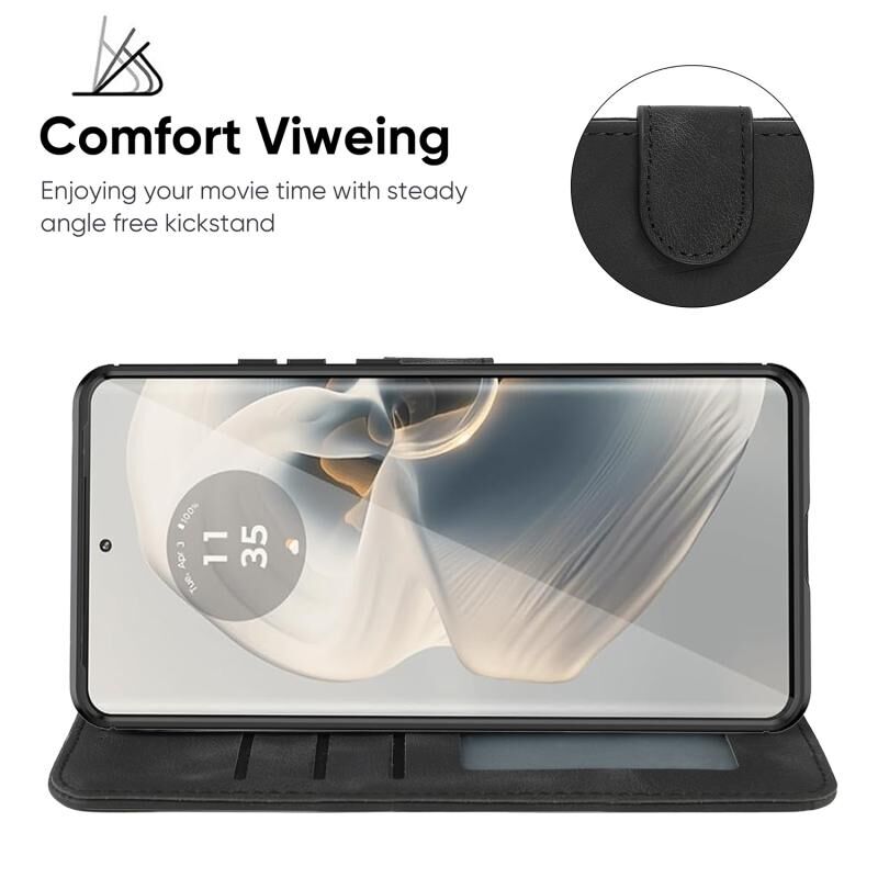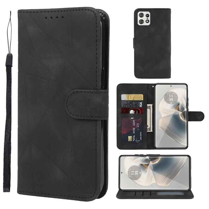 Για Motorola Edge 50 Pro Skin Feel γεωμετρικές γραμμές δερμάτινη θήκη τηλεφώνου (μαύρο)