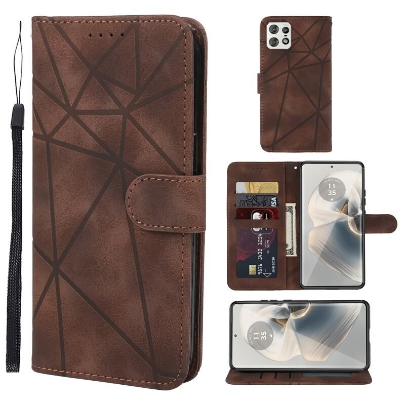 Για Motorola Edge 50 Pro Skin Feel γεωμετρικές γραμμές δερμάτινη θήκη τηλεφώνου (καφέ)