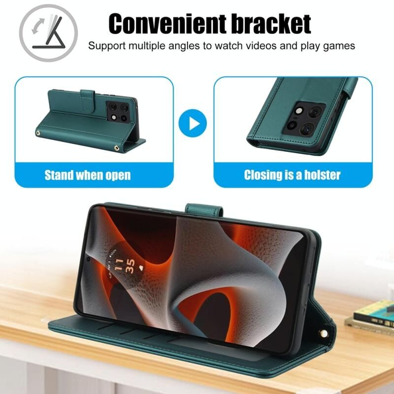 Για Motorola Edge 50 Pro Skin Feel Pure Color Card Slots δερμάτινη θήκη τηλεφώνου με διπλό κορδόνι (πράσινο)