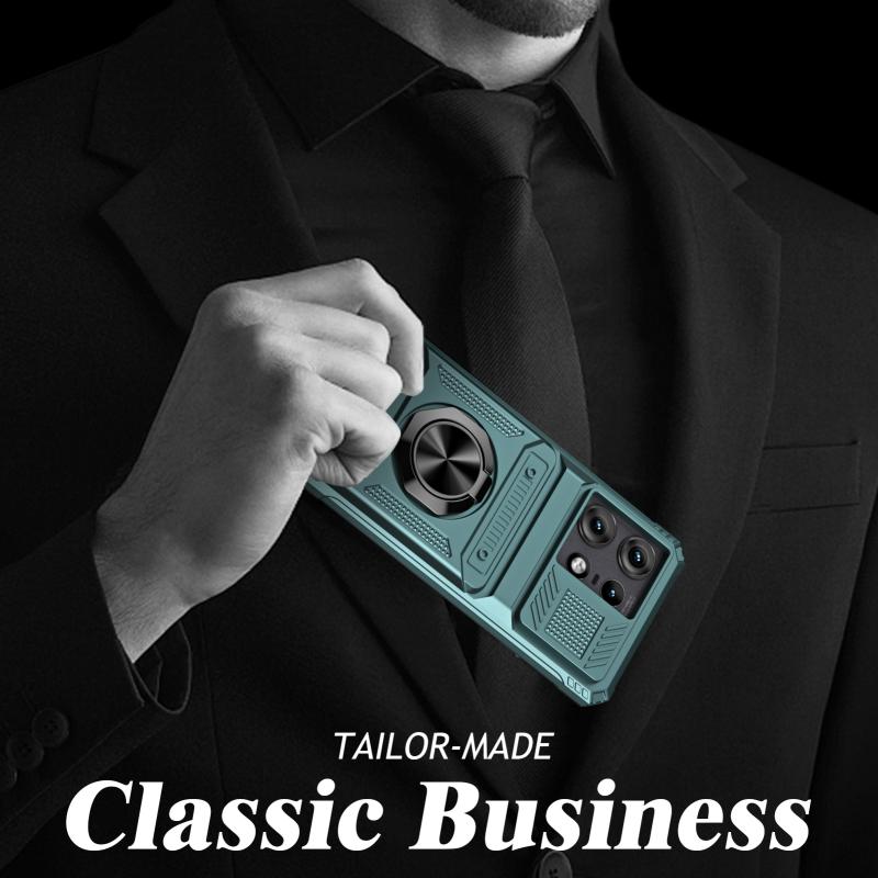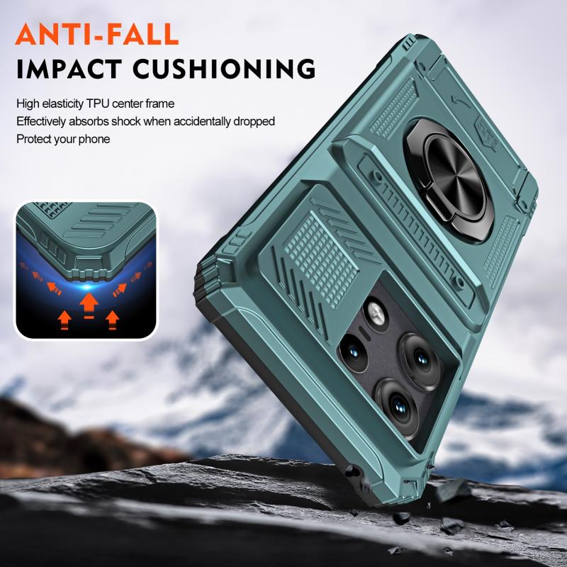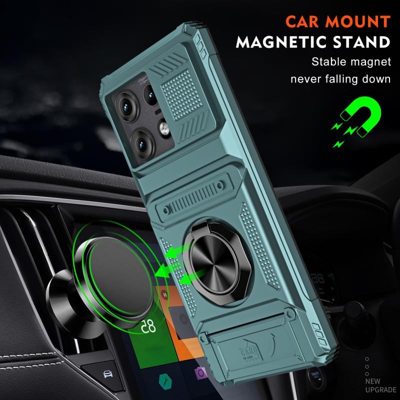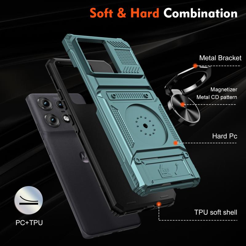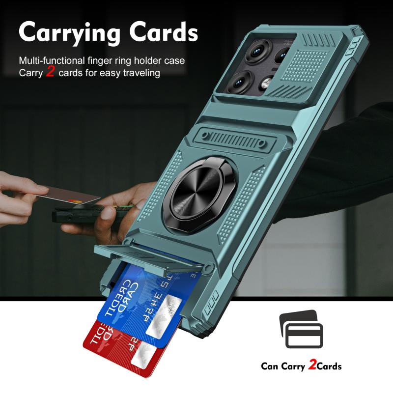 For Motorola Edge 50 Pro TPU+PC Shockproof Card Slot Phone Case with Metal Ring Holder(Green)
