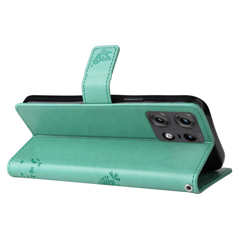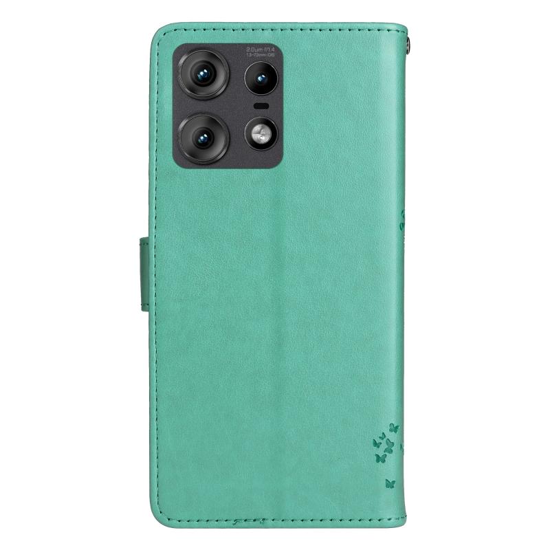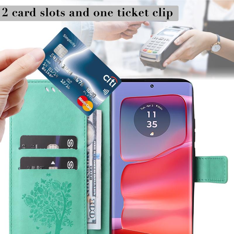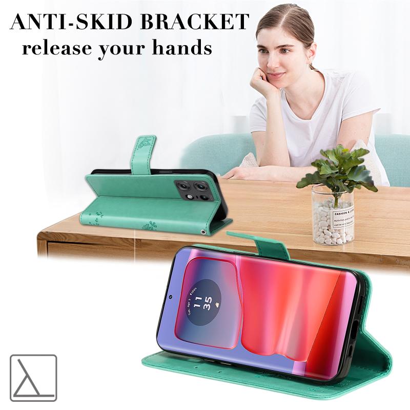 For Motorola Edge 50 Pro Tree & Cat Embossed Pattern Flip Leather Phone Case(Green)
