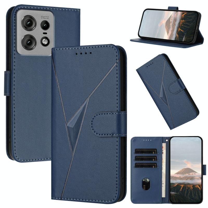 Για Motorola Edge 50 Pro Τρίγωνο μοτίβο αγκράφα κούμπωμα δερμάτινη θήκη τηλεφώνου (Royal Blue)