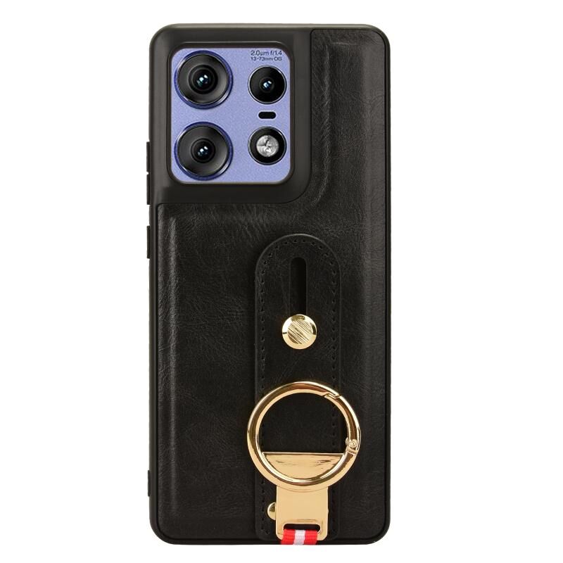Για Motorola Edge 50 Pro Wristband δέρμα πίσω θήκη τηλεφώνου (μαύρο)