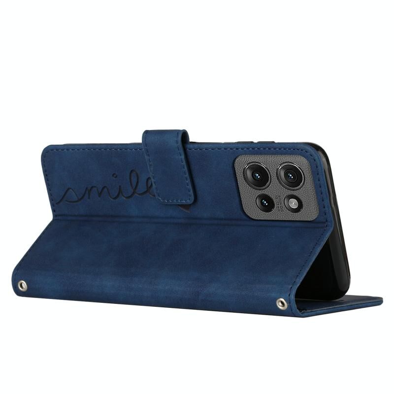 Για Motorola Edge 50 Skin Feel Heart ανάγλυφη δερμάτινη θήκη τηλεφώνου με μακρύ κορδόνι (Μπλε)