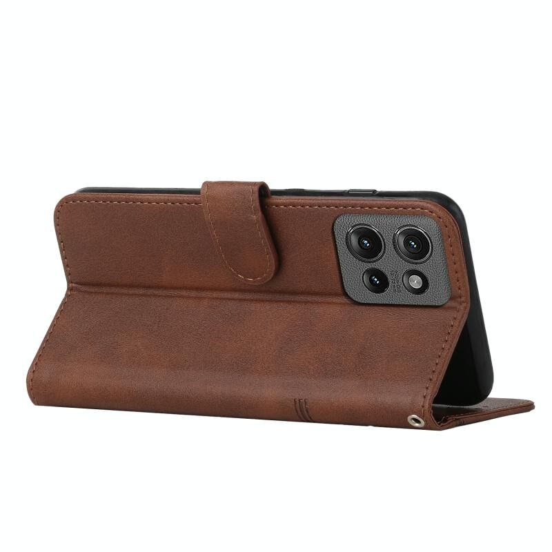 Για Motorola Edge 50 ραφή μοσχάρι υφή δερμάτινη θήκη τηλεφώνου πόρπη (καφέ)