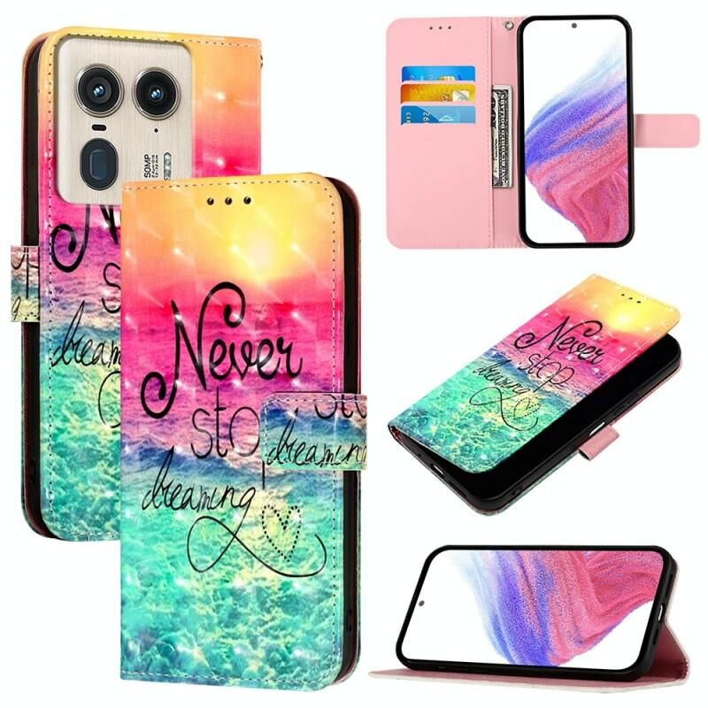 Θήκη τηλεφώνου από δέρμα με οριζόντια αναδίπλωση και τρισδιάστατη βαφή για Motorola Edge 50 Ultra (Κυνηγώντας Όνειρα)