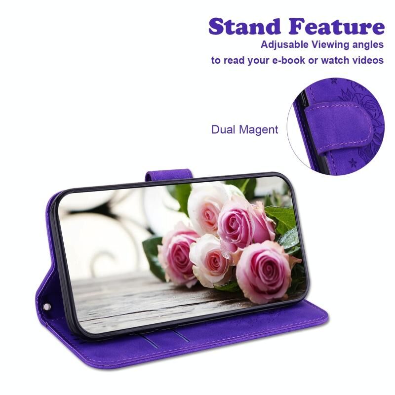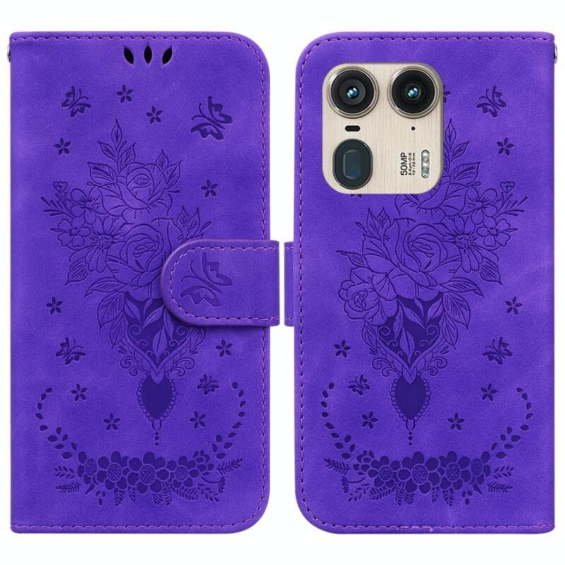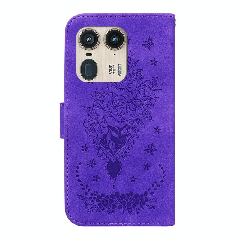 Για Motorola Edge 50 Ultra Πεταλούδα Rose ανάγλυφο δέρμα υπόθεση τηλεφώνου (μωβ)