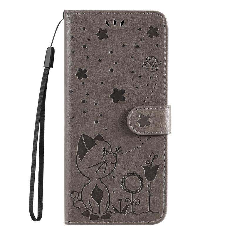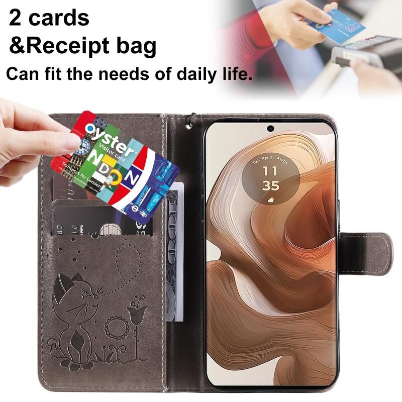 Θήκη τηλεφώνου από δέρμα με ανάγλυφο σχέδιο γάτας και μέλισσας για Motorola Edge 50 Ultra (Κόκκινο)