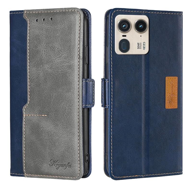 Για Motorola Edge 50 Ultra αντίθεση χρώμα πλευρά πόρπη δερμάτινη θήκη τηλεφώνου υπόθεση (μπλε + γκρι)