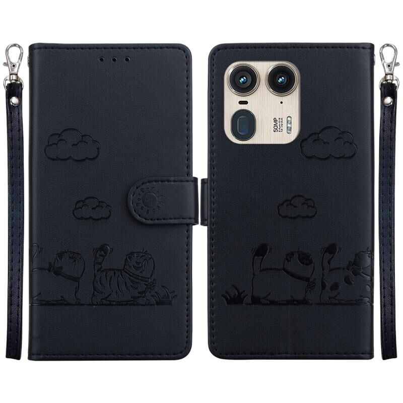 Θήκη τηλεφώνου από δέρμα RFID για Motorola Edge 50 Ultra, με χαριτωμένα σχέδια γατών (Χρυσό Ρόδι)