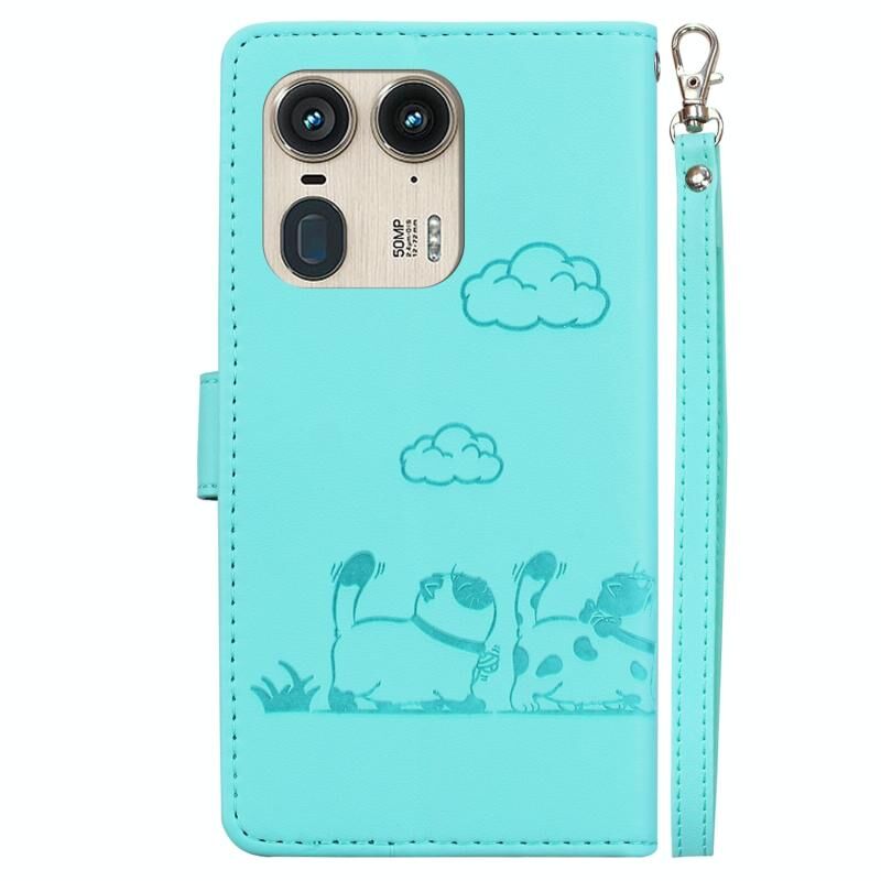 Θήκη τηλεφώνου από δέρμα RFID για Motorola Edge 50 Ultra, με χαριτωμένα σχέδια γατών (Χρυσό Ρόδι)