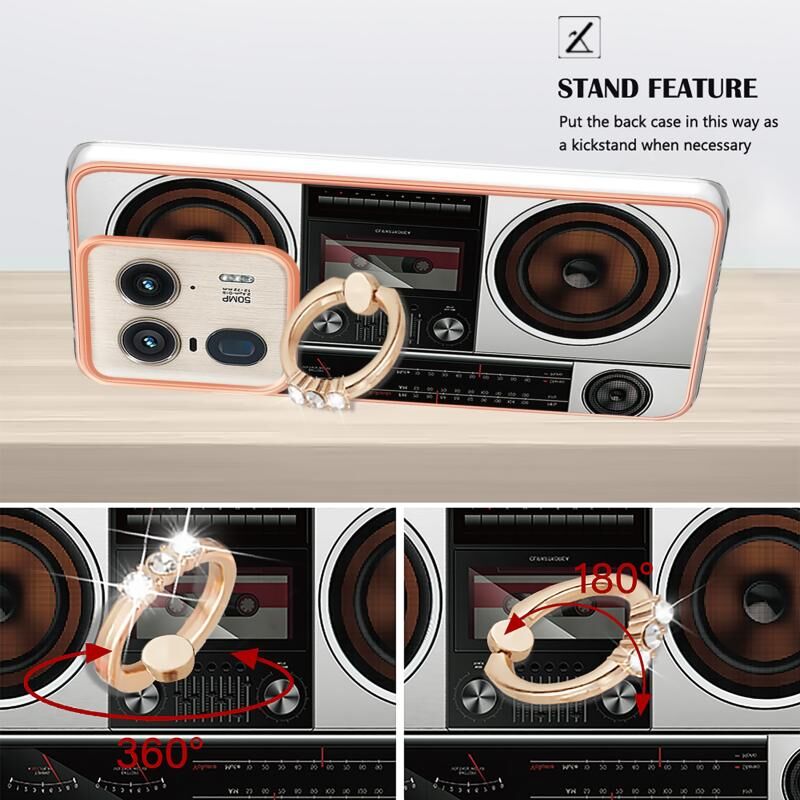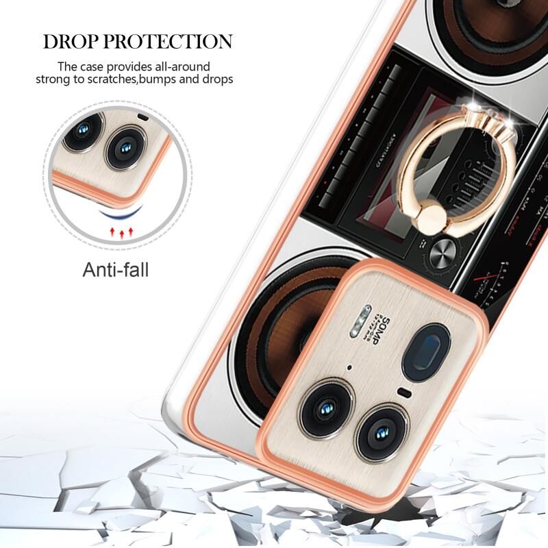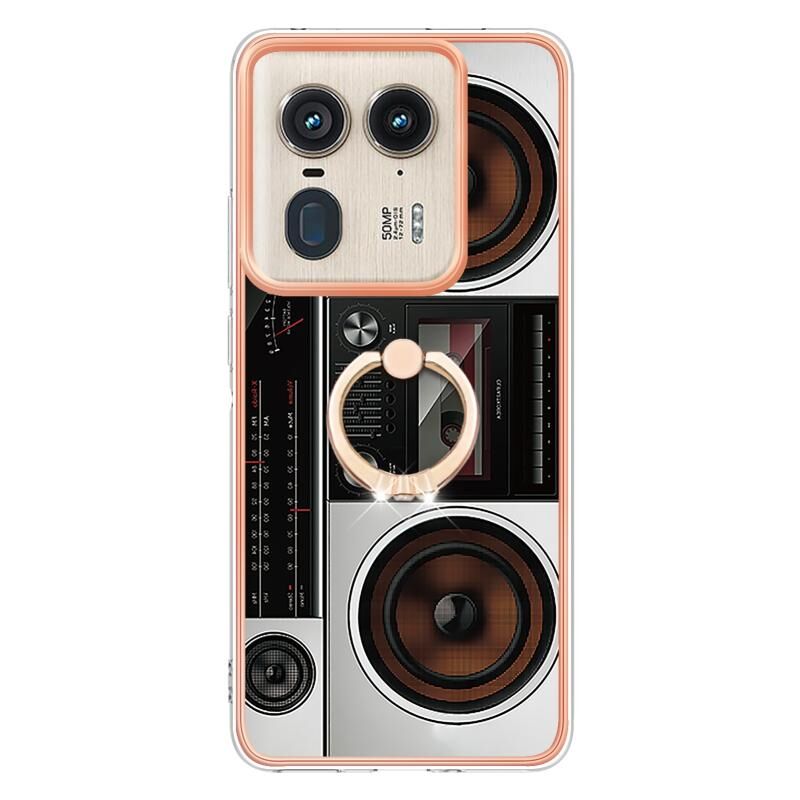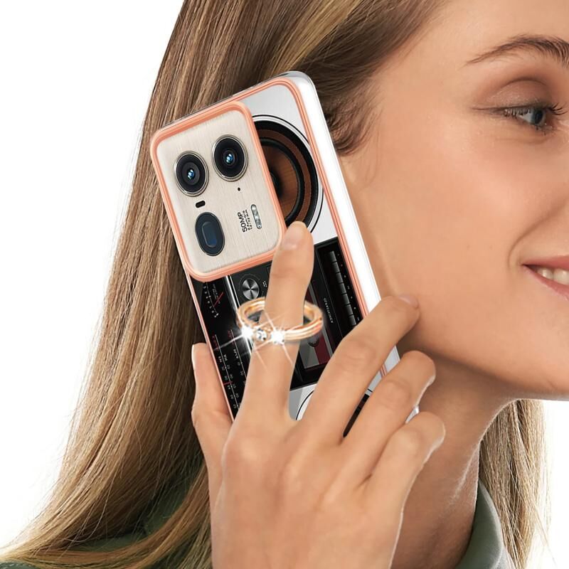 For Motorola Edge 50 Ultra Electroplating Dual-side IMD Phone Case with Ring Holder(Retro Radio)