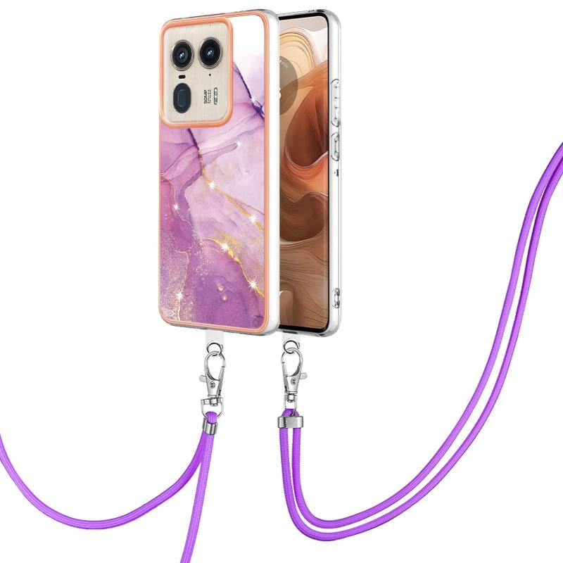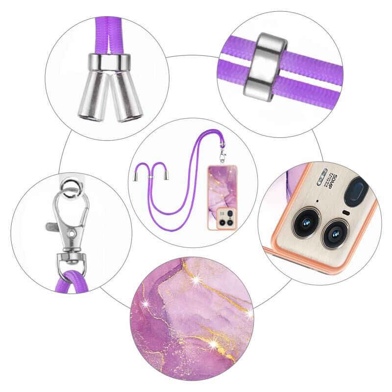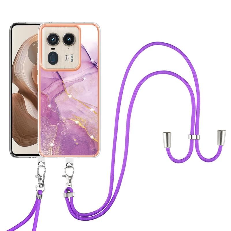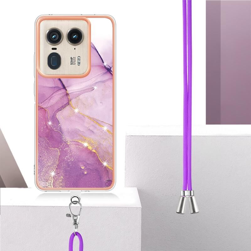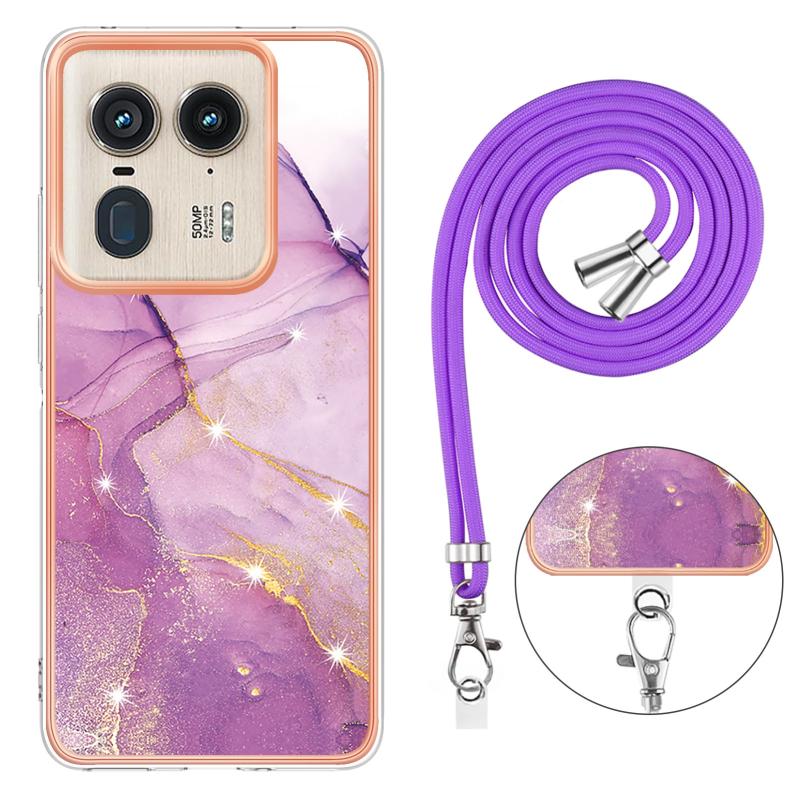 For Motorola Edge 50 Ultra Electroplating Marble Dual-side IMD Phone Case with Lanyard(Purple 001)