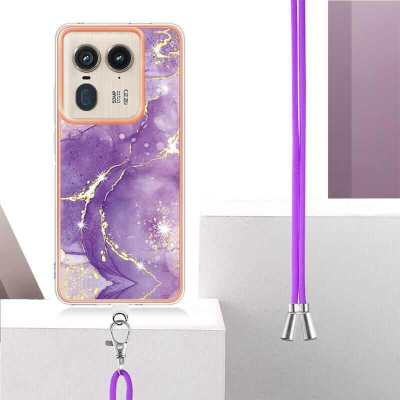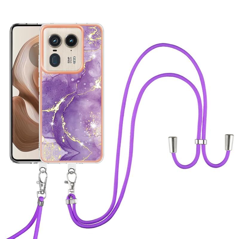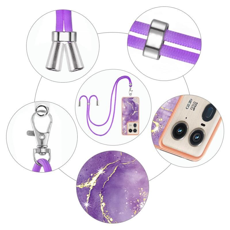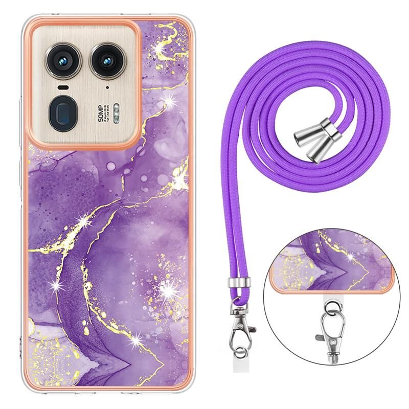 For Motorola Edge 50 Ultra Electroplating Marble Dual-side IMD Phone Case with Lanyard(Purple 002)