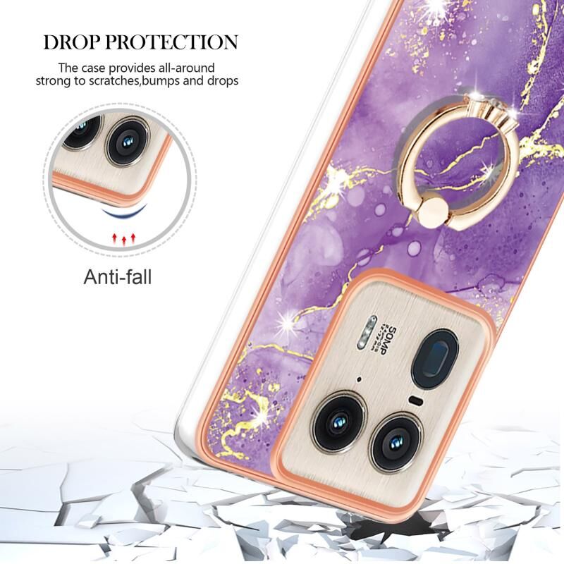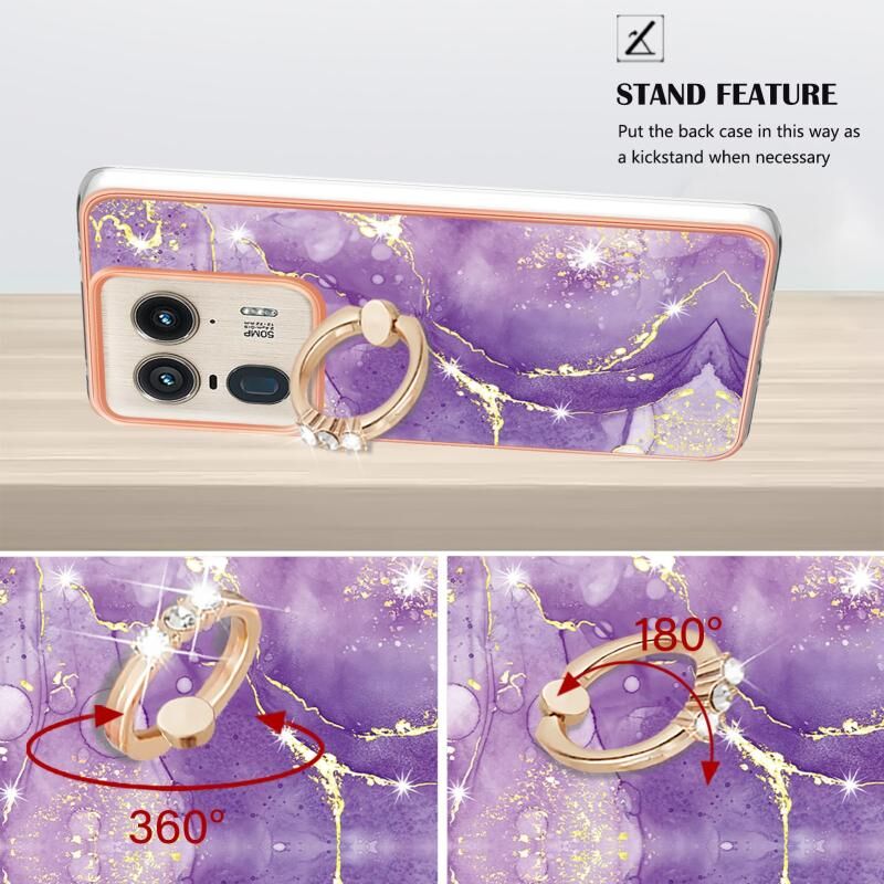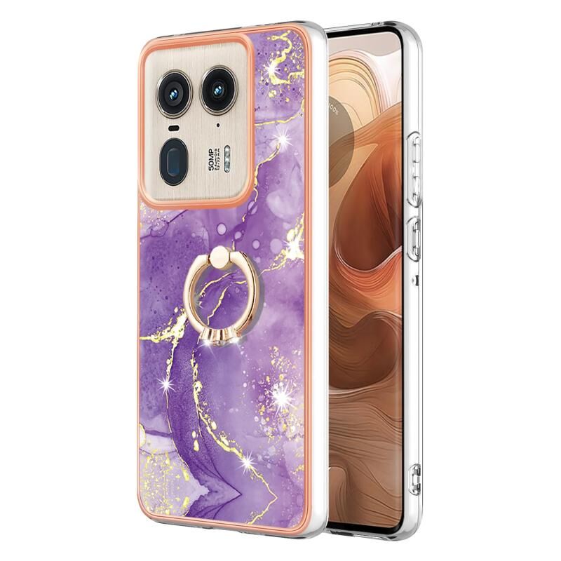 Θήκη κινητού τηλεφώνου Motorola Edge 50 Ultra με Ηλεκτρολυτική Επικάλυψη, σχέδιο Μάρμαρου IMD, από TPU με Δακτύλιο Στήριξης (Λευκό 006)