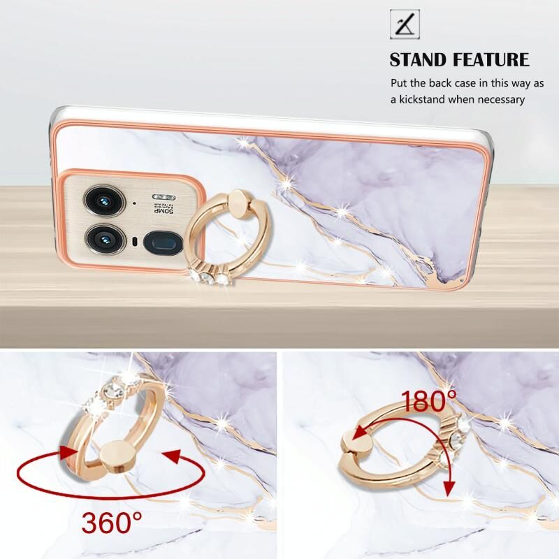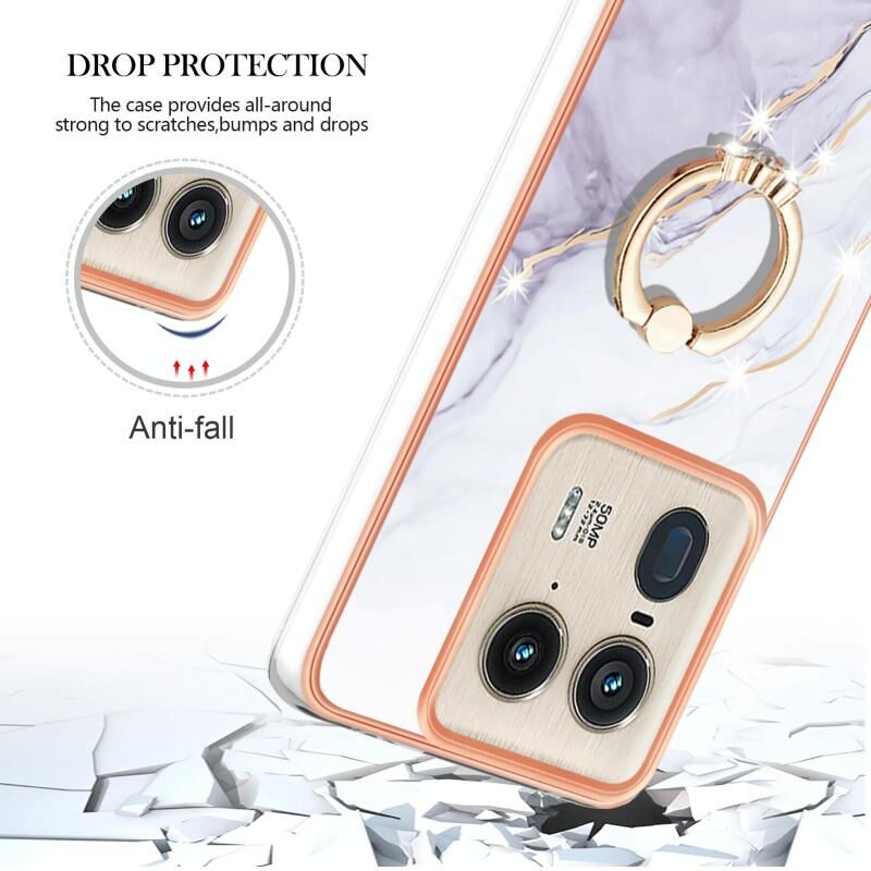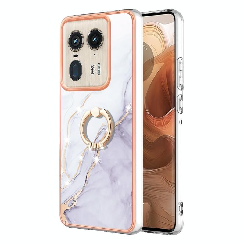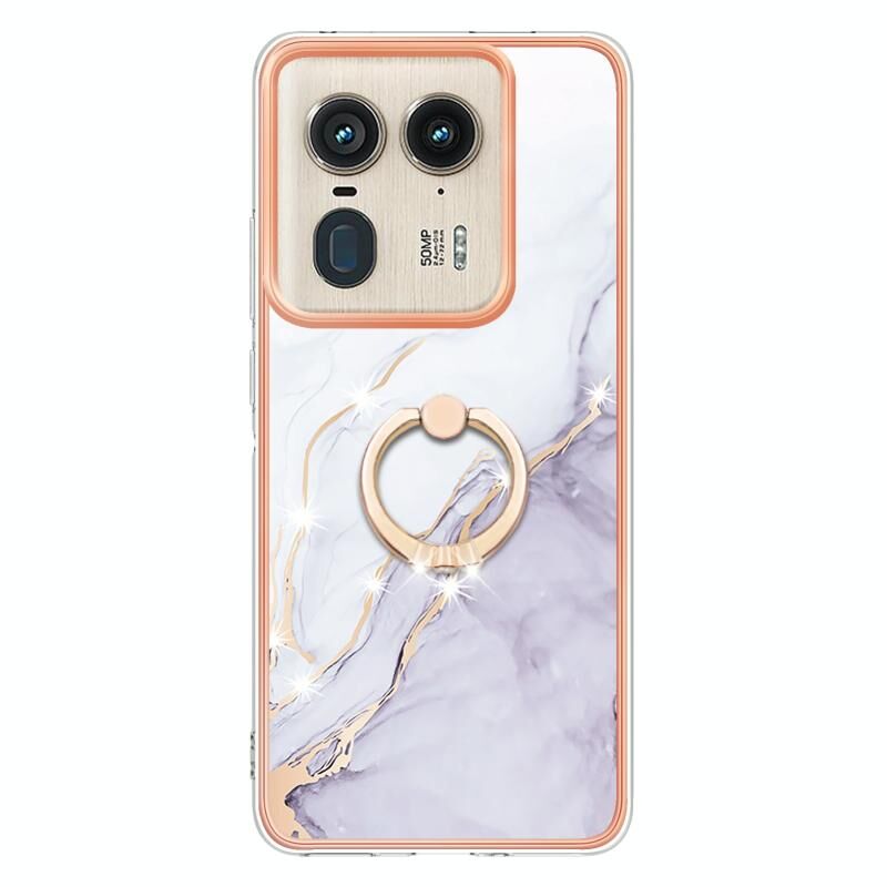 Θήκη κινητού τηλεφώνου Motorola Edge 50 Ultra με Ηλεκτρολυτική Επικάλυψη, σχέδιο Μάρμαρου IMD, από TPU με Δακτύλιο Στήριξης (Λευκό 006)