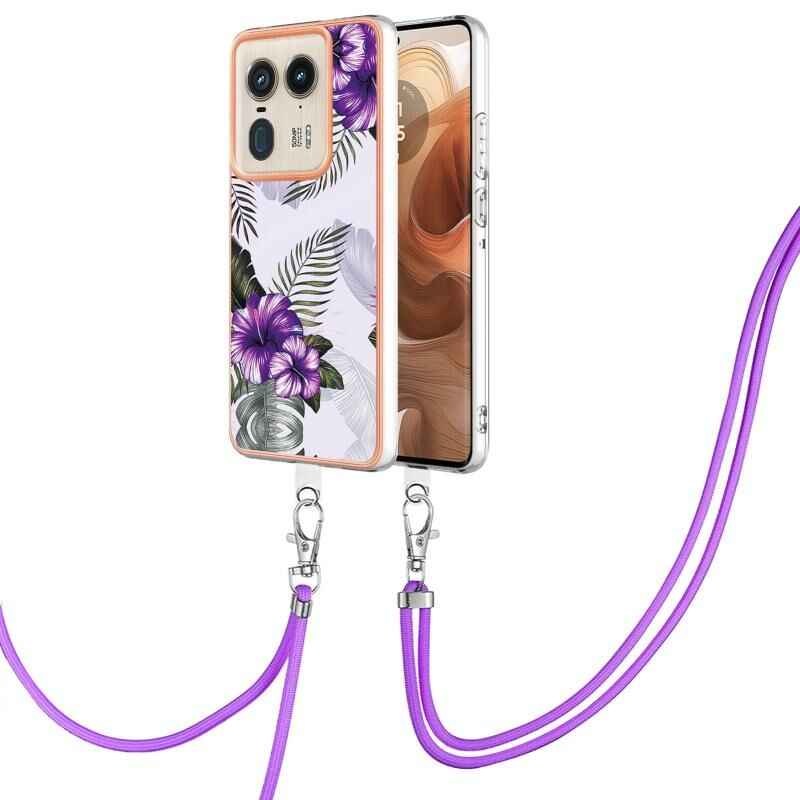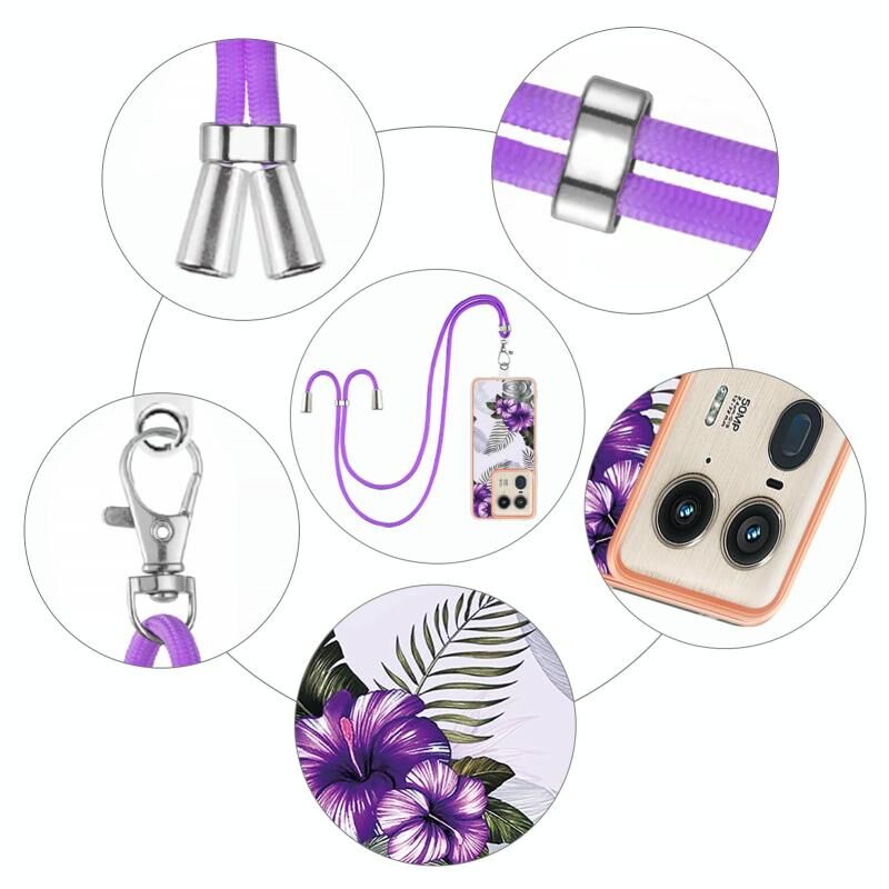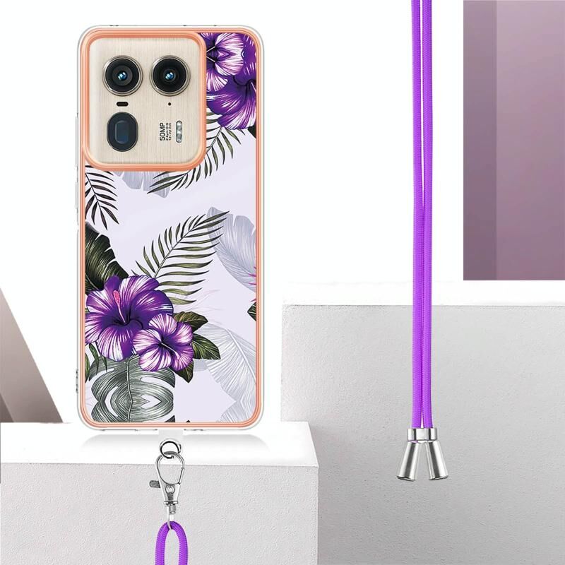 Θήκη προστασίας για Motorola Edge 50 Ultra με σχέδιο electroplating IMD TPU, ανθεκτική σε κρούσεις και λουρί λαιμού (Ροζ Λεπίδες)