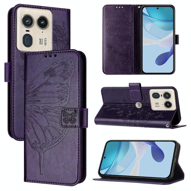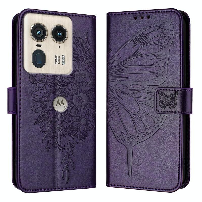Για Motorola Edge 50 Ultra ανάγλυφη πεταλούδα δερμάτινη θήκη τηλεφώνου (Σκούρο μωβ)