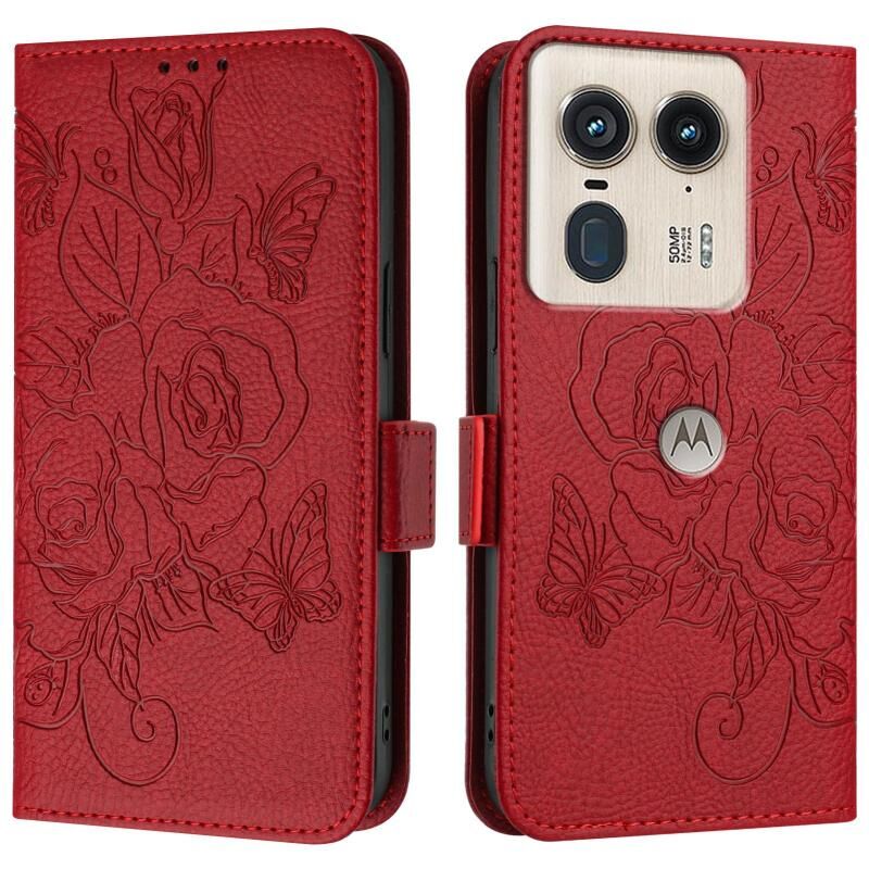 Για Motorola Edge 50 Ultra ανάγλυφο Rose RFID Anti-theft δερμάτινη θήκη τηλεφώνου (κόκκινο)