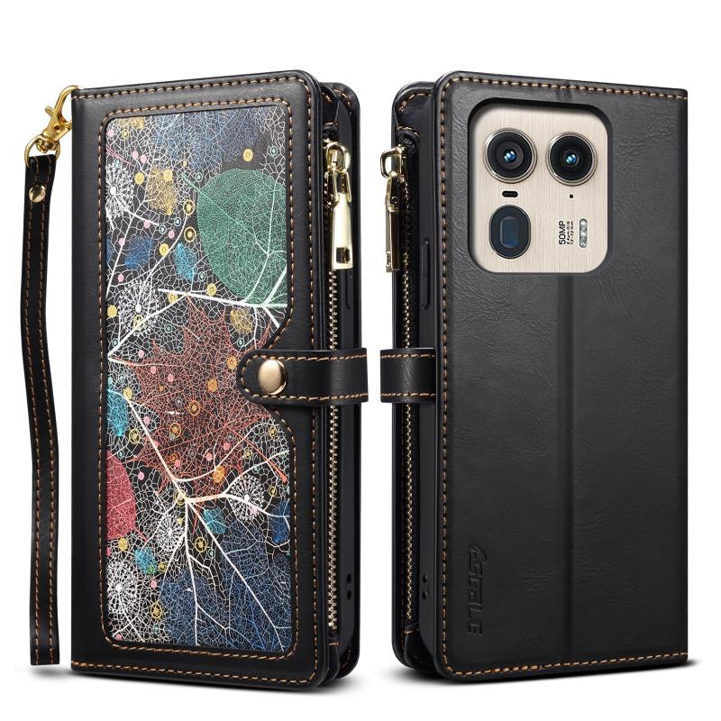 For Motorola Edge 50 Ultra ESEBLE Star Series Lanyard Zipper Wallet RFID Leather Case(Black) (ESEBLE)