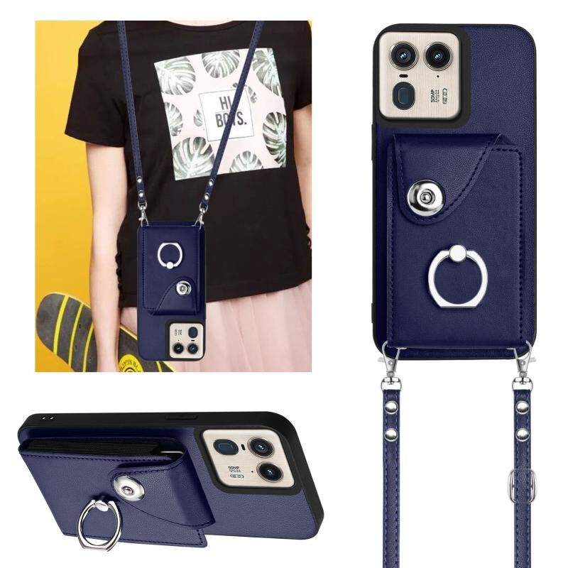 Για Motorola Edge 50 Ultra έκδοση της ΕΕ Οργανική κάρτα τσάντα δαχτυλίδι κάτοχος υπόθεση τηλεφώνου με μακρύ κορδόνι (μπλε)