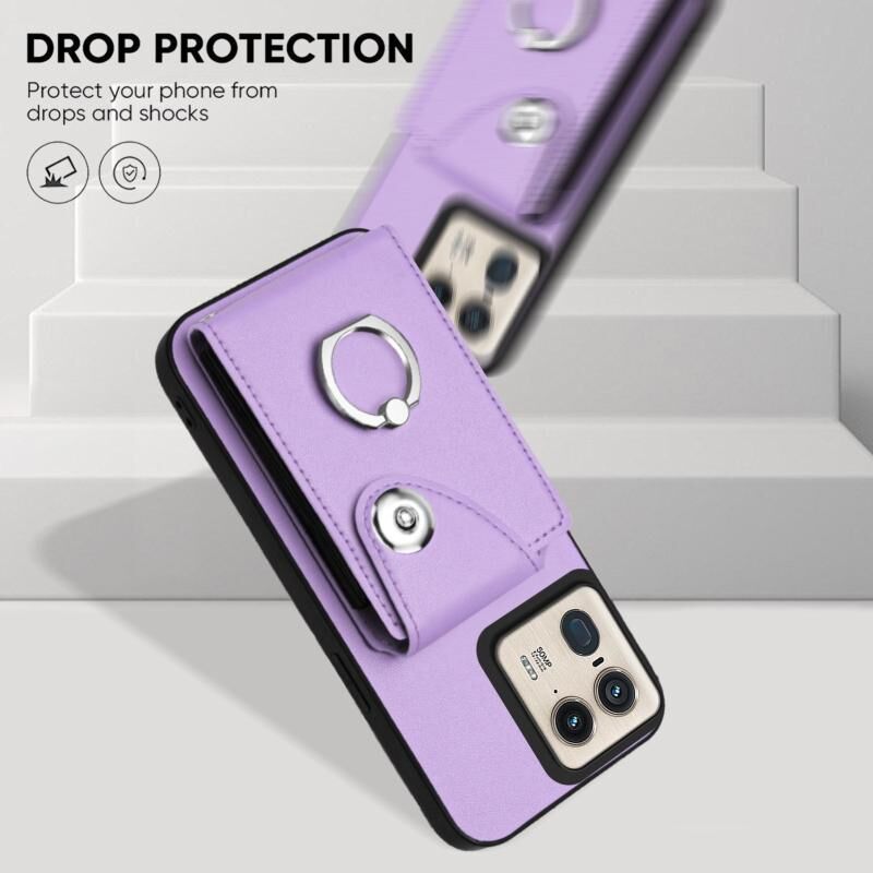 Για Motorola Edge 50 Ultra έκδοση της ΕΕ Οργανική κάρτα τσάντα δαχτυλίδι κάτοχος υπόθεση τηλεφώνου με μακρύ κορδόνι (μωβ)
