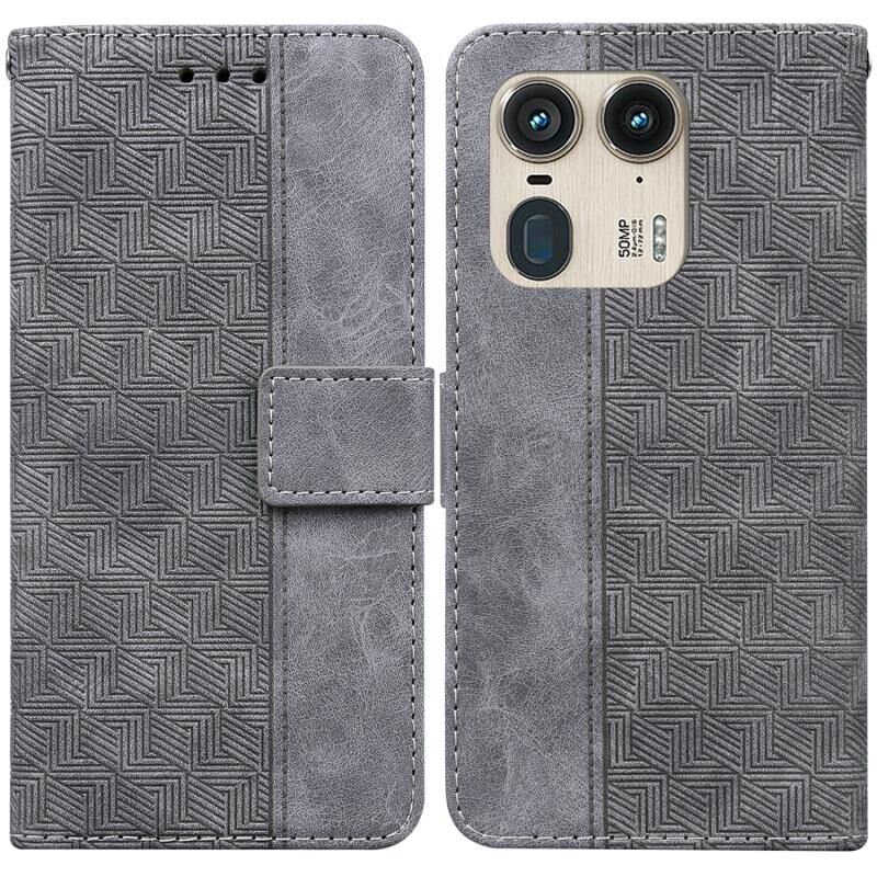 Για Motorola Edge 50 Ultra γεωμετρική ανάγλυφη δερμάτινη θήκη τηλεφώνου (γκρι)