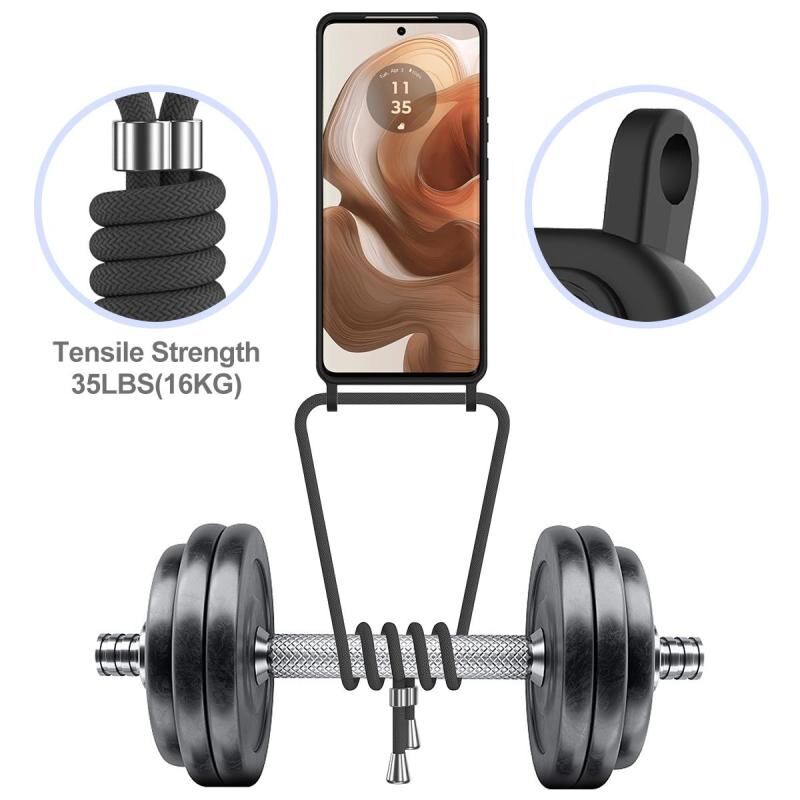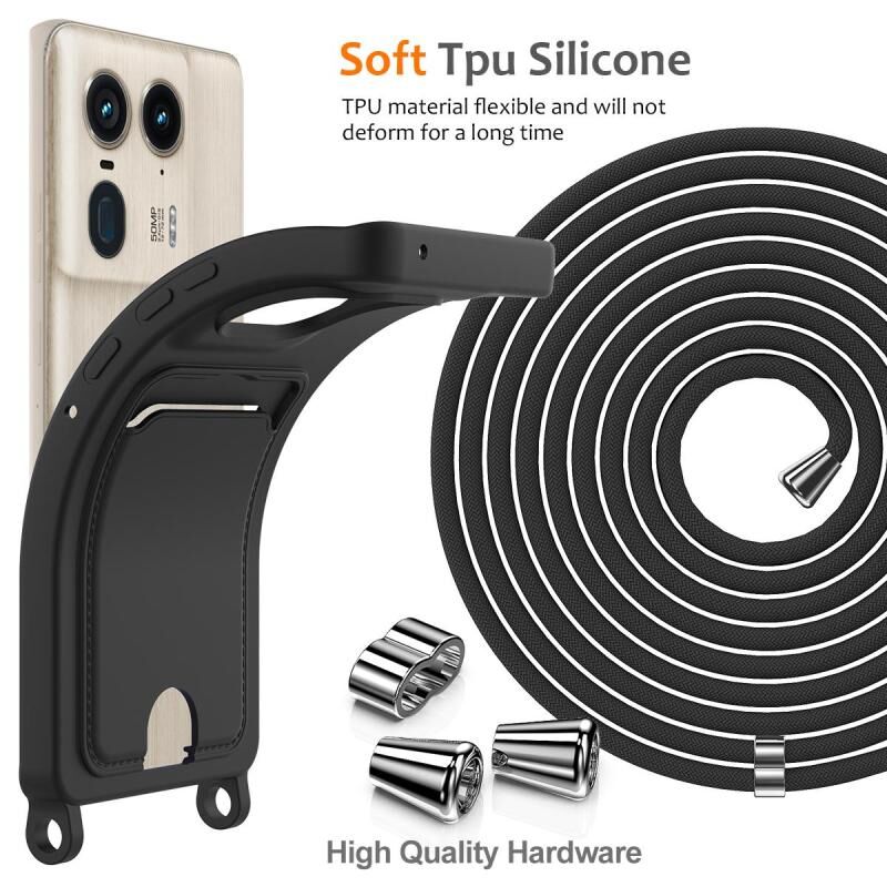 Θήκη κινητού τηλεφώνου Motorola Edge 50 Ultra με ενσωματωμένη θήκη κάρτας, μονόχρωμη, από υγρή σιλικόνη με κορδόνι (Κόκκινη)