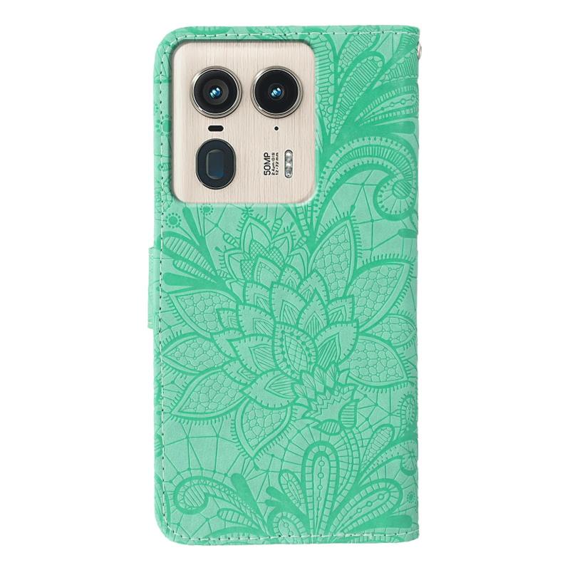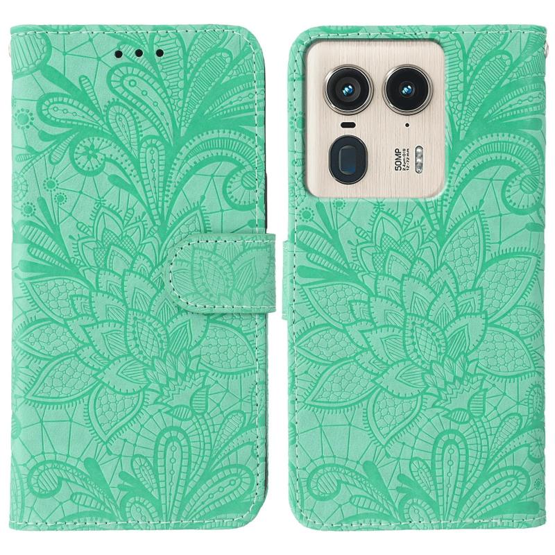 Θήκη τηλεφώνου από δέρμα με ανάγλυφο σχέδιο λουλουδιών Lace για Motorola Edge 50 Ultra (Γκρι)