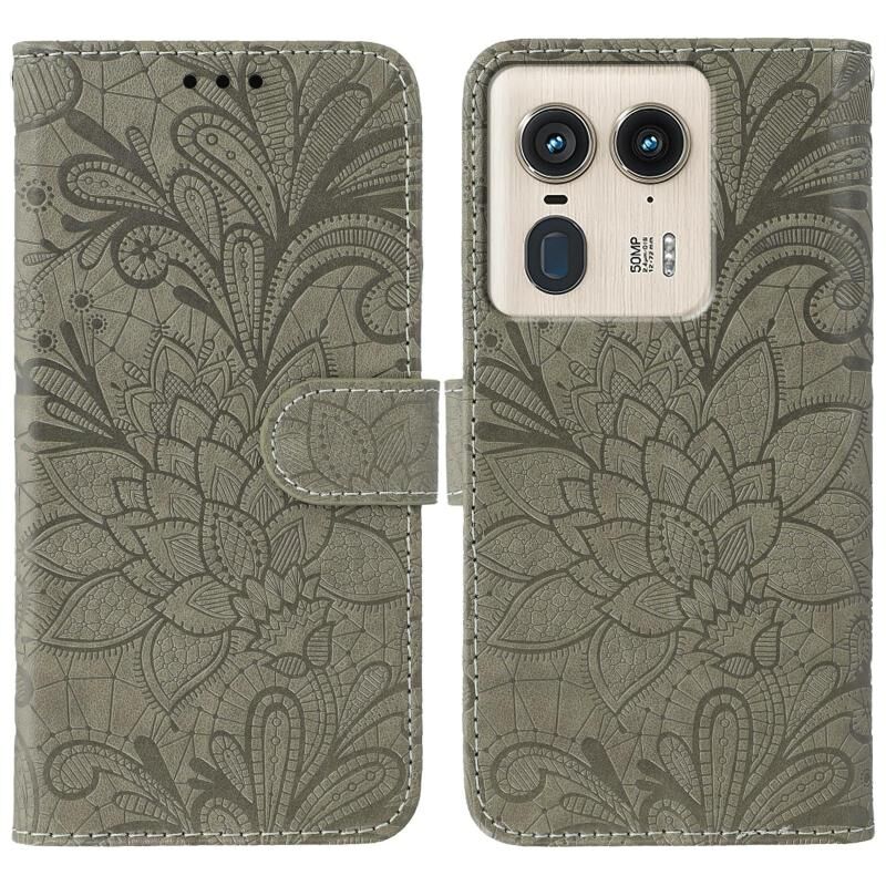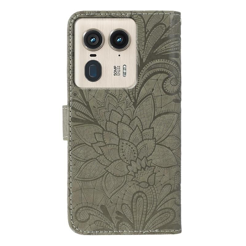Θήκη τηλεφώνου από δέρμα με ανάγλυφο σχέδιο λουλουδιών Lace για Motorola Edge 50 Ultra (Γκρι)