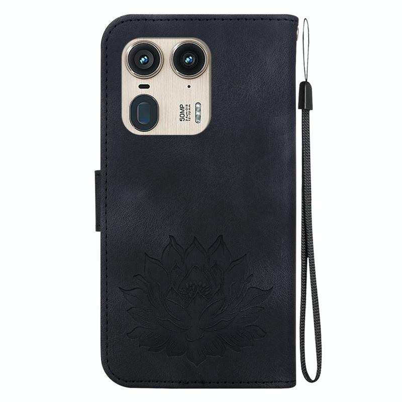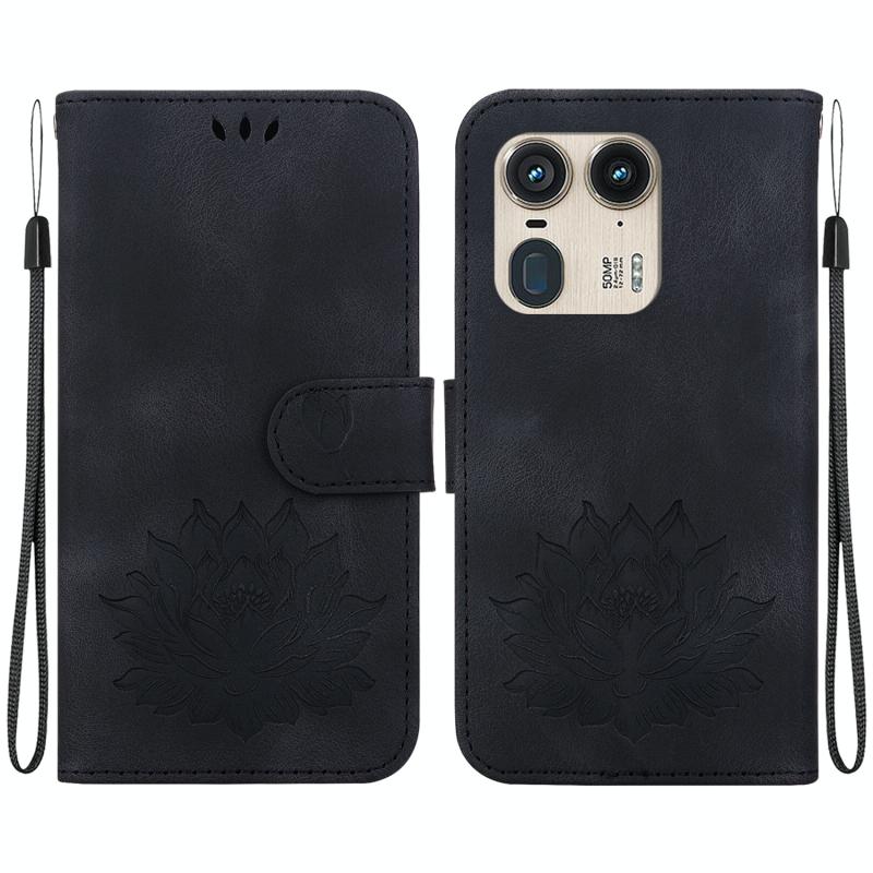 For Motorola Edge 50 Ultra Lotus Embossed Leather Phone Case(Black)
