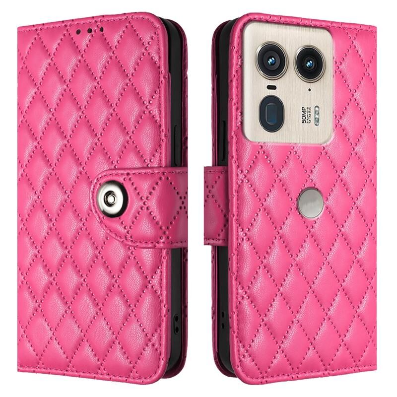 Για Motorola Edge 50 Ultra Rhombic Texture Flip δερμάτινη θήκη τηλεφώνου με κορδόνι (Rose Red)