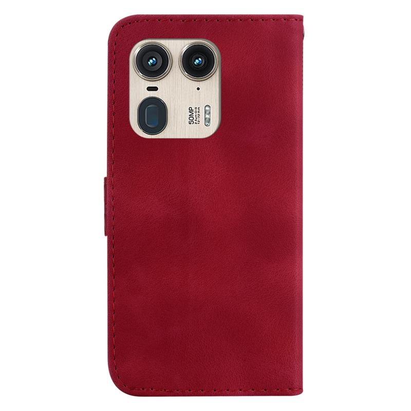 Θήκη τηλεφώνου από δέρμα με ανάγλυφο σχέδιο σε σχήμα επτά για Motorola Edge 50 Ultra (Κόκκινο)