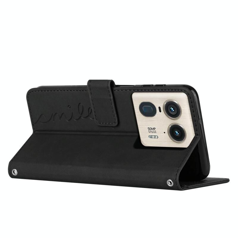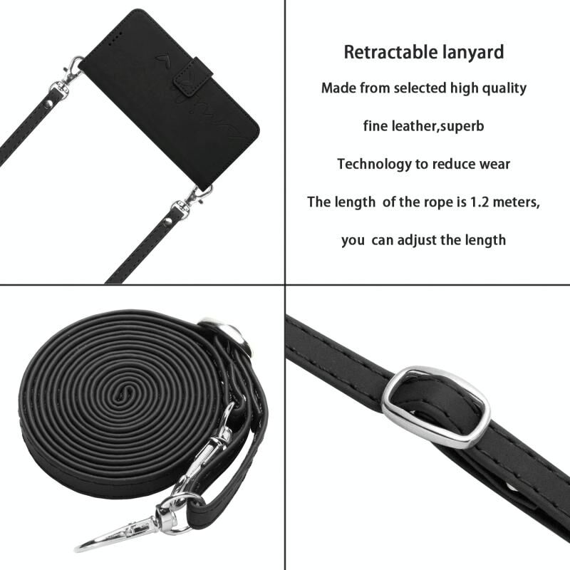 Για Motorola Edge 50 Ultra Skin Feel καρδιά ανάγλυφη δερμάτινη θήκη τηλεφώνου με μακρύ κορδόνι (μαύρο)