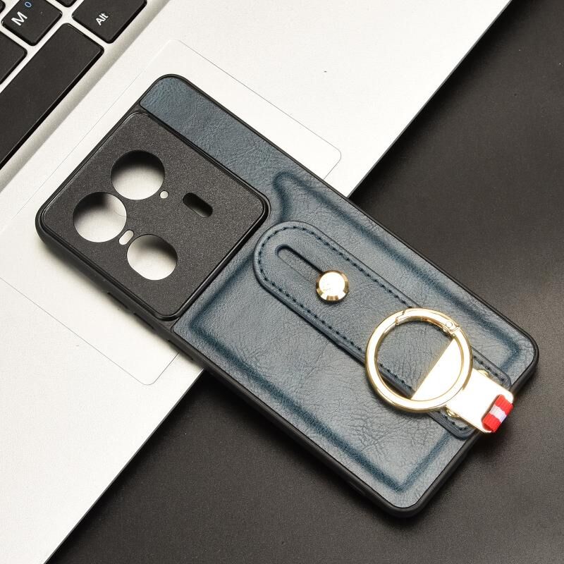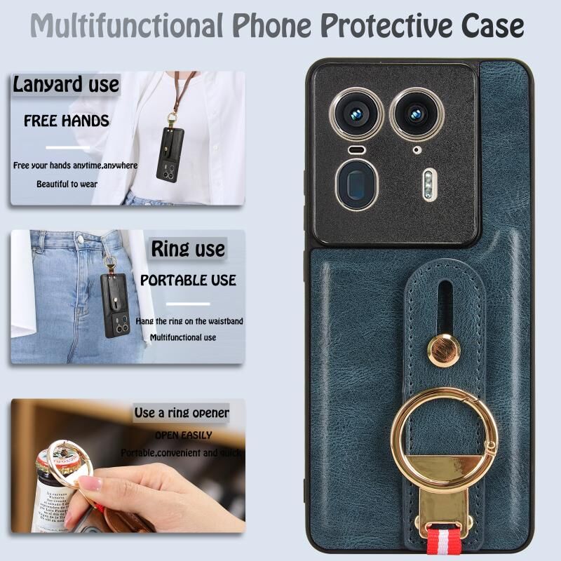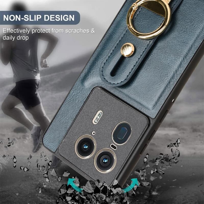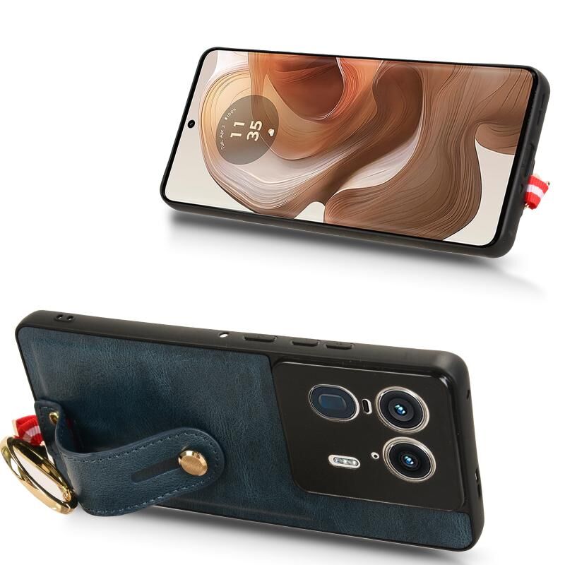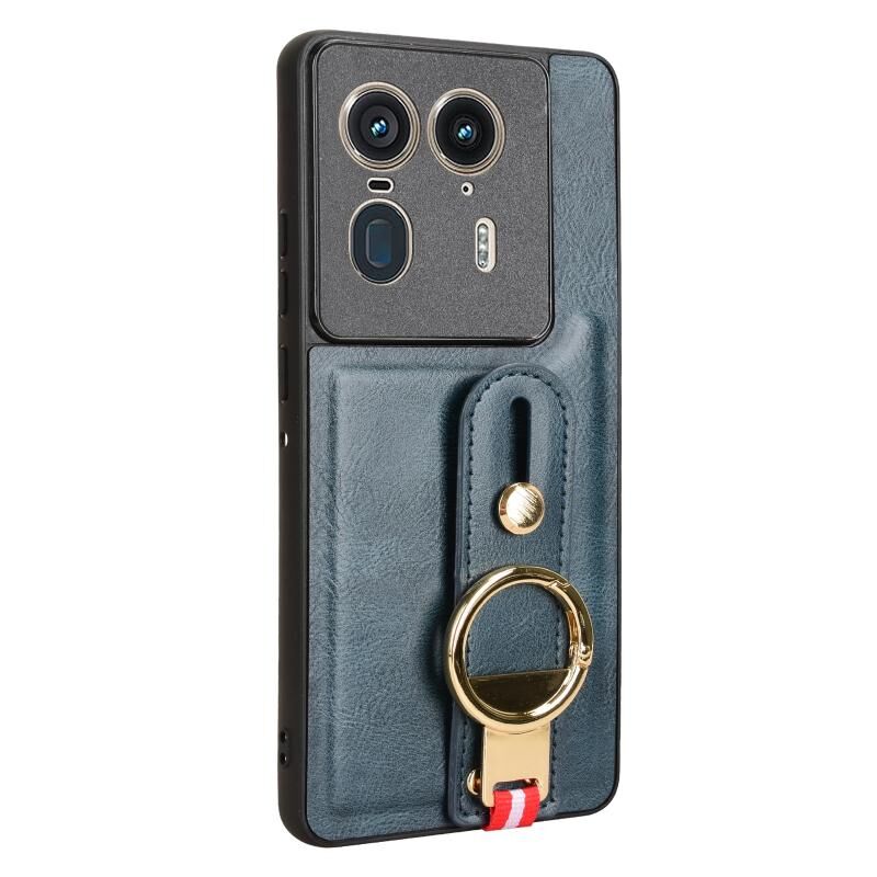 Για Motorola Edge 50 Ultra Wristband δέρμα πίσω θήκη τηλεφώνου (μπλε)