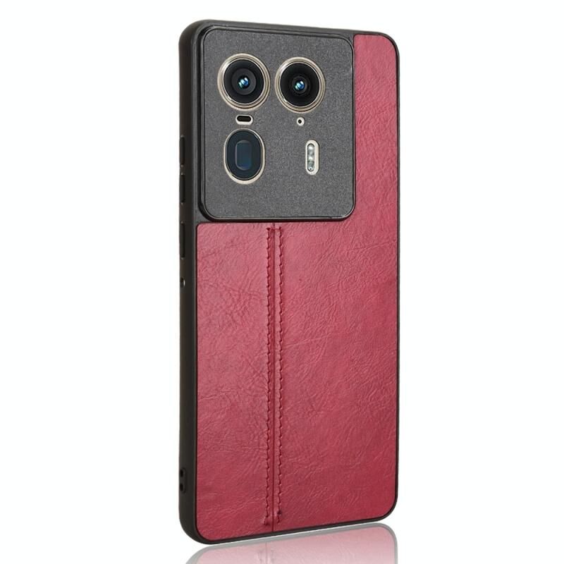 Για Motorola Edge 50 Ultra / X50 Ultra Αγελάδα μοτίβο ραπτικής πίσω κάλυμμα τηλέφωνο υπόθεση (Κόκκινο)