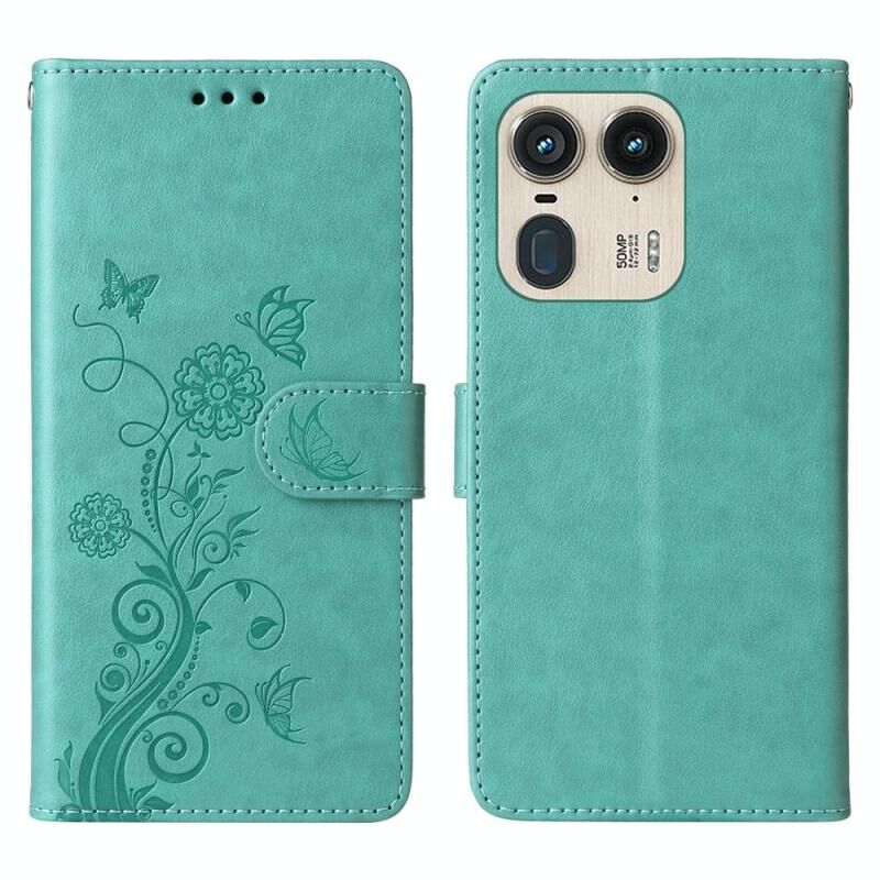 Θήκη τηλεφώνου δερμάτινη με ανάγλυφα λουλούδια πεταλούδας για Motorola Edge 50 Ultra / X50 Ultra (Χρυσό)