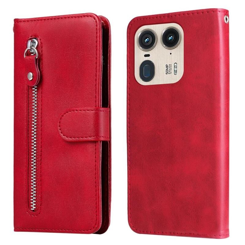 Θήκη τηλεφώνου από δέρμα με υφή μοσχαριού και φερμουάρ για Motorola Edge 50 Ultra / X50 Ultra (Χρυσορόδινο)