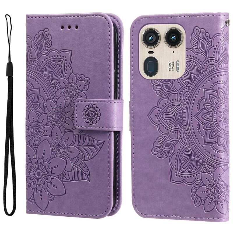 Θήκη τηλεφώνου από δέρμα με ανάγλυφα επτά πέταλα λουλουδιών για Motorola Edge 50 Ultra / X50 Ultra (Ανοιχτό Μωβ)