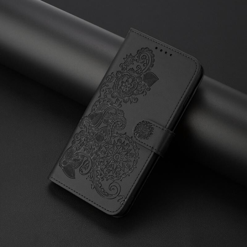 Για Motorola Edge 5G 2024 Datura λουλούδι ανάγλυφο ανάγλυφο Flip δέρμα τηλέφωνο υπόθεση (μαύρο)