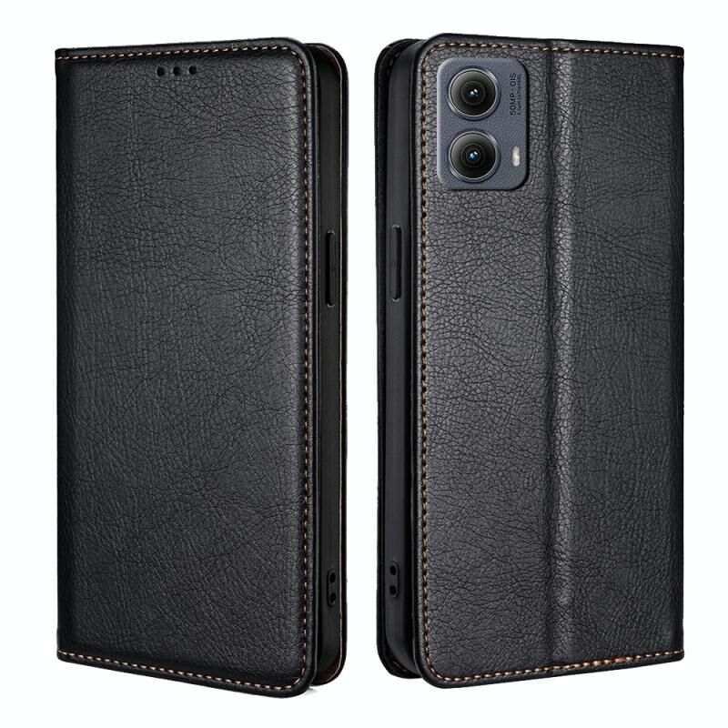 Για Motorola Edge 5G 2024 Γυαλιστερό λάδι στερεό χρώμα μαγνητική δερμάτινη θήκη τηλεφώνου (μαύρο)