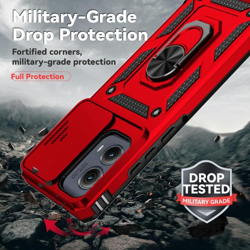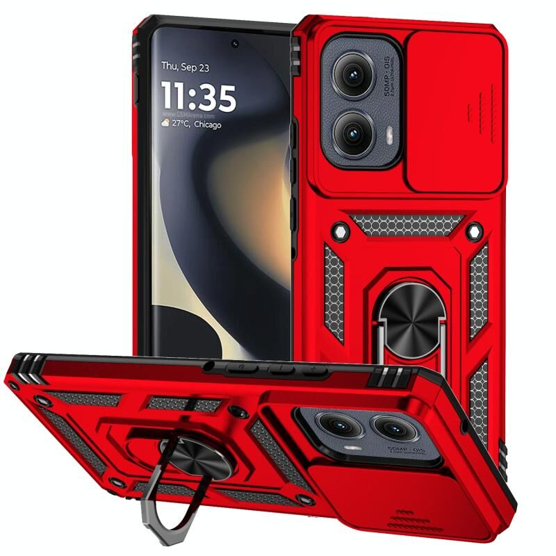 Για το Motorola Edge 5G 2024 Συρόμενη θήκη τηλεφώνου με κάλυμμα κάμερας (κόκκινο)