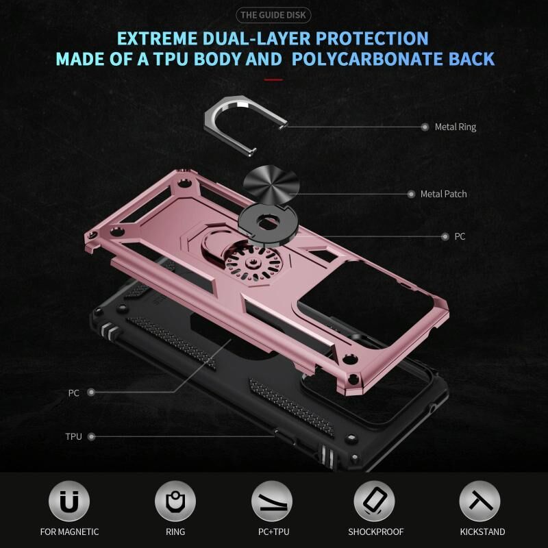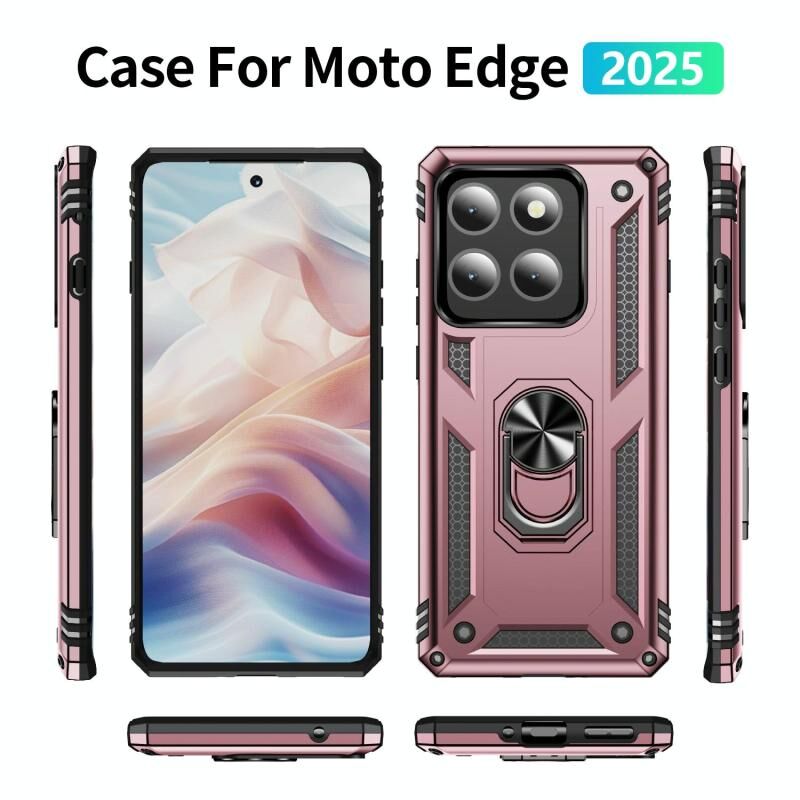 Θήκη κινητού τηλεφώνου για Motorola Edge 5G 2025, ανθεκτική στις κρούσεις, από TPU + PC με βάση στήριξης (Ροζ χρυσός)