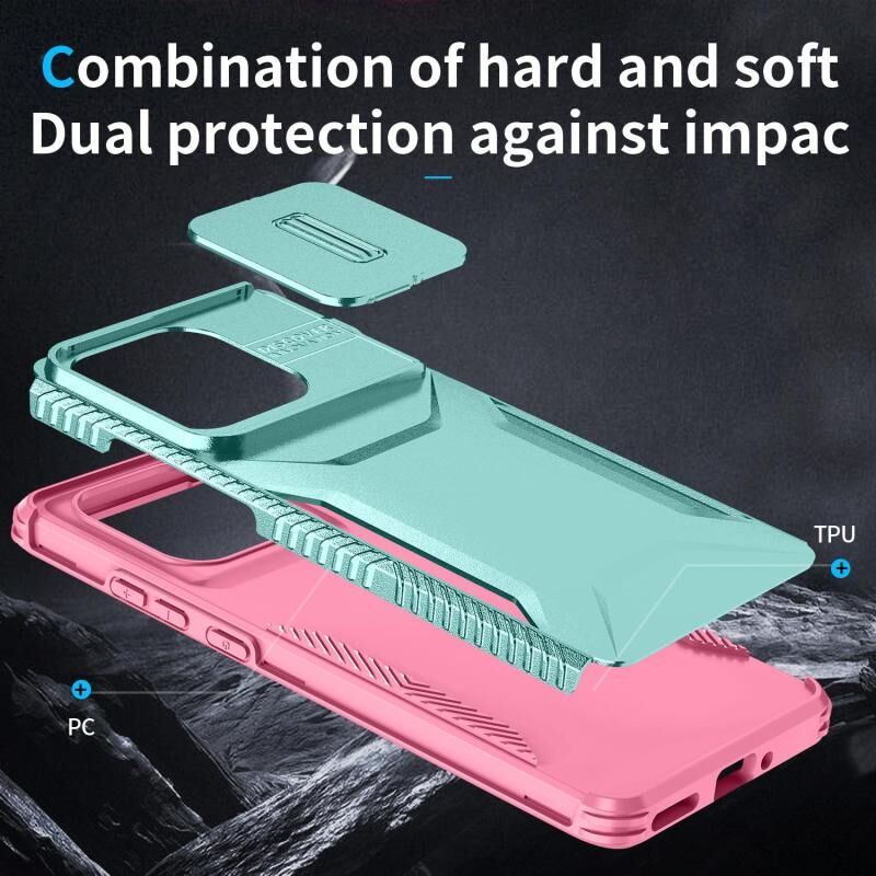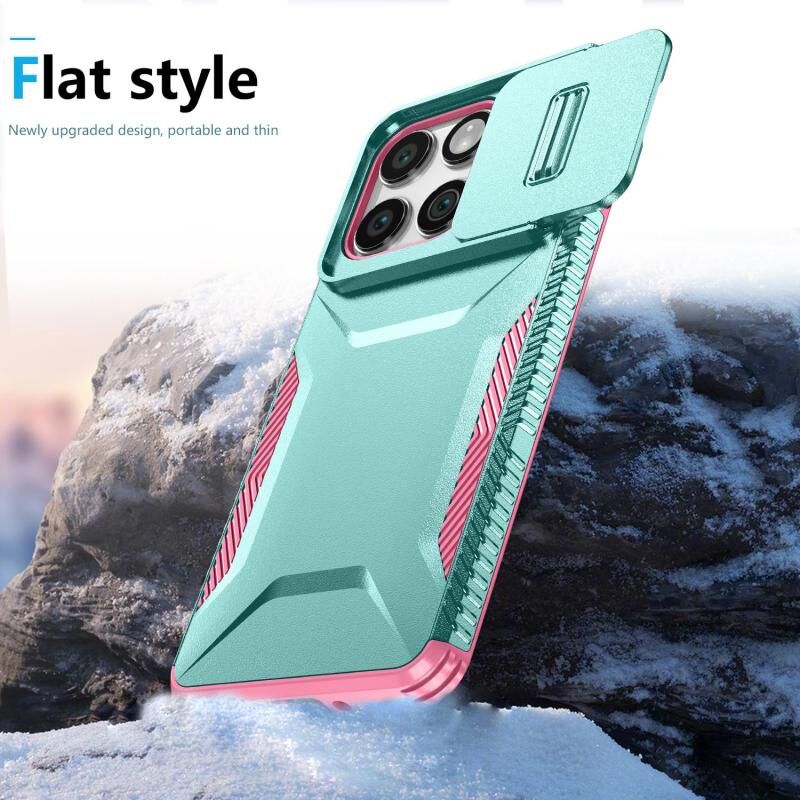 Θήκη τηλεφώνου για Motorola Edge 5G 2025 με συρόμενο προστατευτικό κάμερας (Ροζ και γκριζοπράσινο)