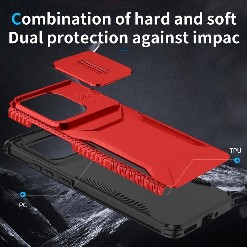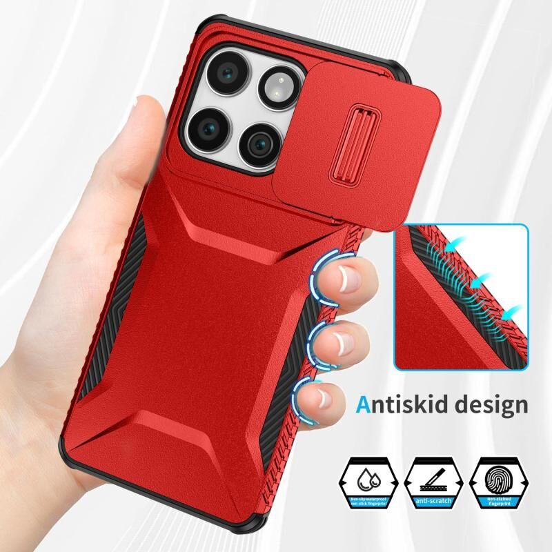 Θήκη τηλεφώνου για Motorola Edge 5G 2025 με συρόμενο προστατευτικό κάμερας (Red)