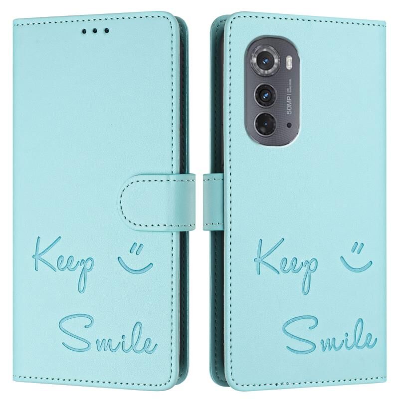 Θήκη τηλεφώνου δερμάτινη με ανάγλυφο χαμόγελο και RFID για Motorola Edge 5G UW 2022 (Μέντας πράσινο)